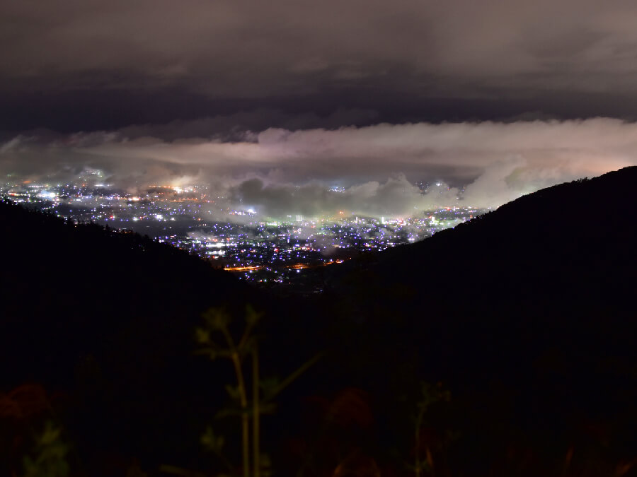 メインとなる甲府盆地の夜景よりかは、若干東南側の位置なので思ったより街の明るさは少ないかもしれないですが、それでも十分。