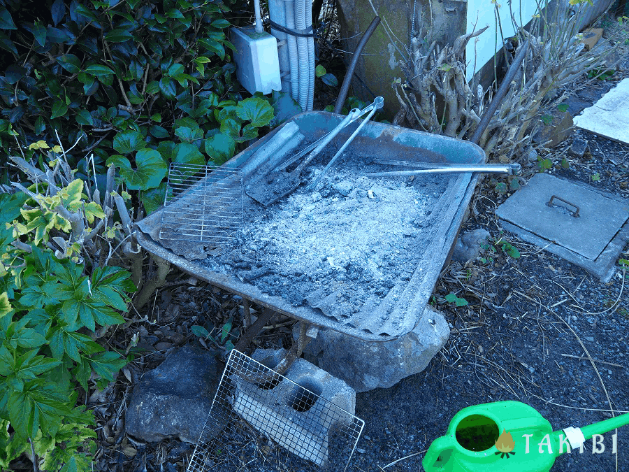使用済みの炭灰は、キャンプ場入口付近にある一輪車に捨てることができます。
