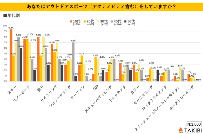 TAKIBI編集部では、アウトドアスポーツについてアンケートを実施しました。