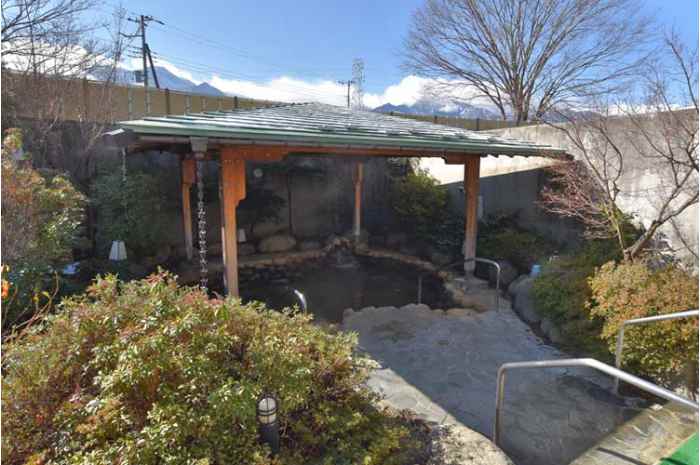 「駒ケ根高原アルプスの丘 家族旅行村」には、「露天 こぶしの湯」という温泉があります。南アルプス連峰を眺めながら入る温泉は格別です。