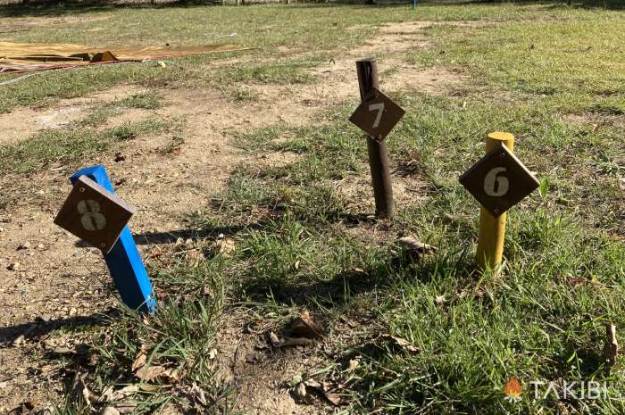 6~10番のサイトは公園の通りに面しているので荷物は運びやすいですが、お散歩中の人の目が気になるかもしれないです。こちらも杭に色が塗られています。