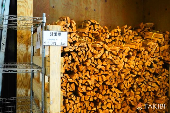 冬キャンプには欠かせない焚き火用の薪も販売していました