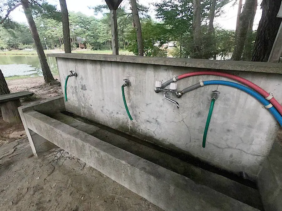 屋根付きの炊事棟でお湯も出てくる仕様になっていましたので寒い季節に手が凍ることはなさそうです。