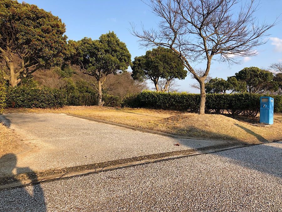 駐車は、各サイトに隣り合う茶色の枠内になります。予約の際に遊具に近い広場サイトとか、夕陽の見える海側の広場サイトとか言うと、空いてたら、とってもらえます。