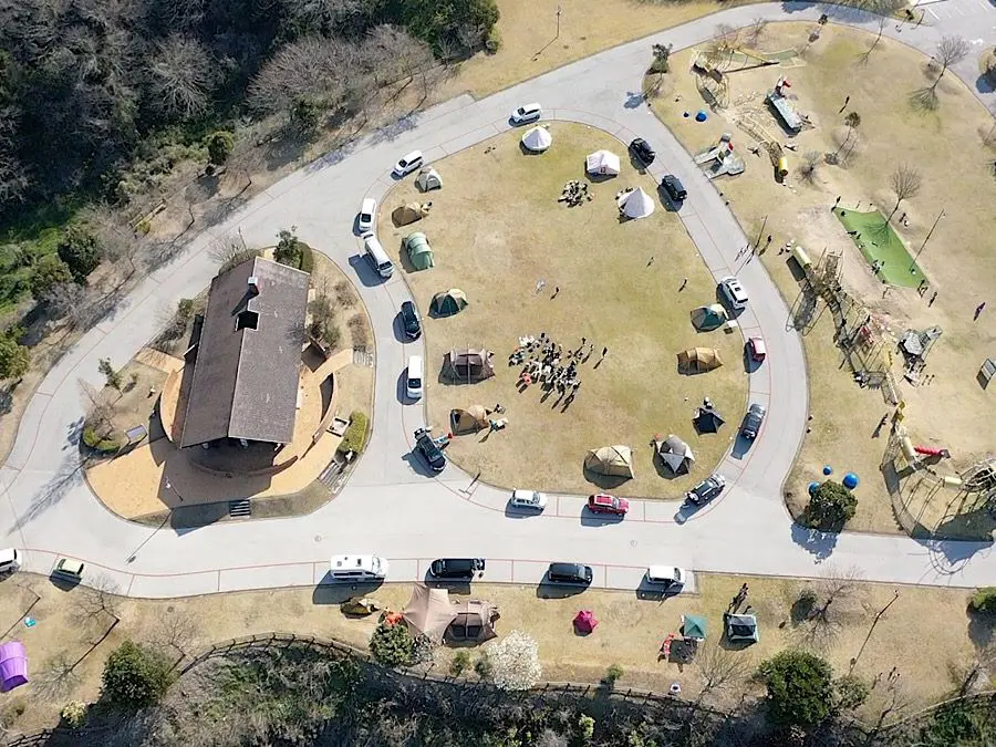 本来なら、写真の公園周辺の道路沿いから桜並木が続いて、公園内の広場サイトも見渡す限り桜になります。広場サイトは人気なので、ベストシーズンは早めに予約が必要です。公園キャンプ場なので、管理も行き届いてますし、管理人さん達の人柄も暖かく、小さな子供連れや初心者キャンパーにもおすすめです。