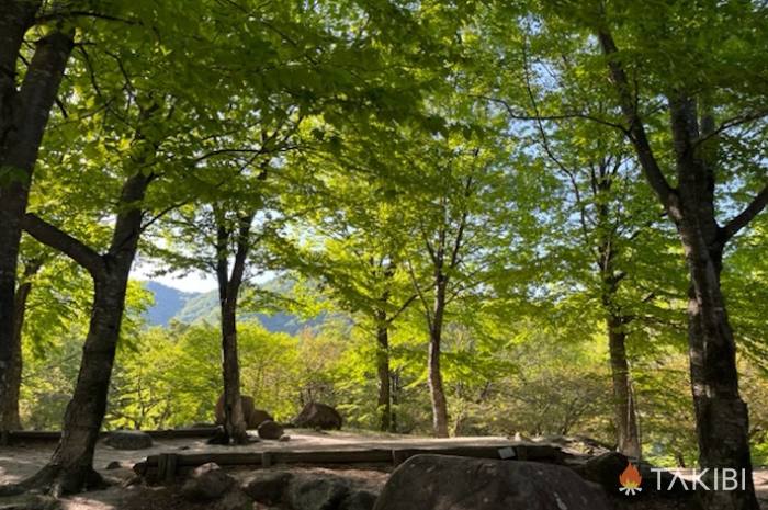 隣接サイトとの距離もしっかりと取ってあり、ゆったりとタープやテントを張ることができます。