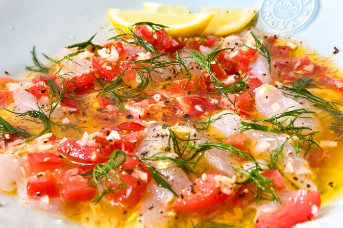高掛農園(生産者)のベビーリーフ、ミニトマト、および釣りで獲得した真鯛を活用して、カルパッチョ、セビーチェなどの料理を作ります。