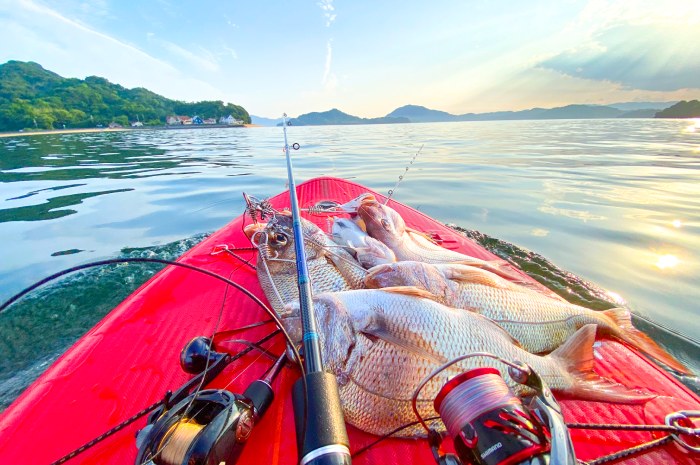 トリマランカヤック、SUPなどで沖に出て魚釣りをすれば、瀬戸内海の産地直送、新鮮な魚介を楽しむことができます。