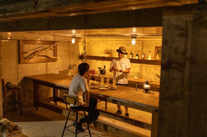 高低差のある地形を活かした場所にひっそりと佇む、ケイブ(洞窟)カフェ&バー。バーテンダーになりきってカクテルを作ったり、友人との会話に花を咲かせながらお酒を味わってみたり、隠れ家のような場所を満喫できます。仲間同士でお酒を持ち寄って、今しかない時間を楽しみましょう。