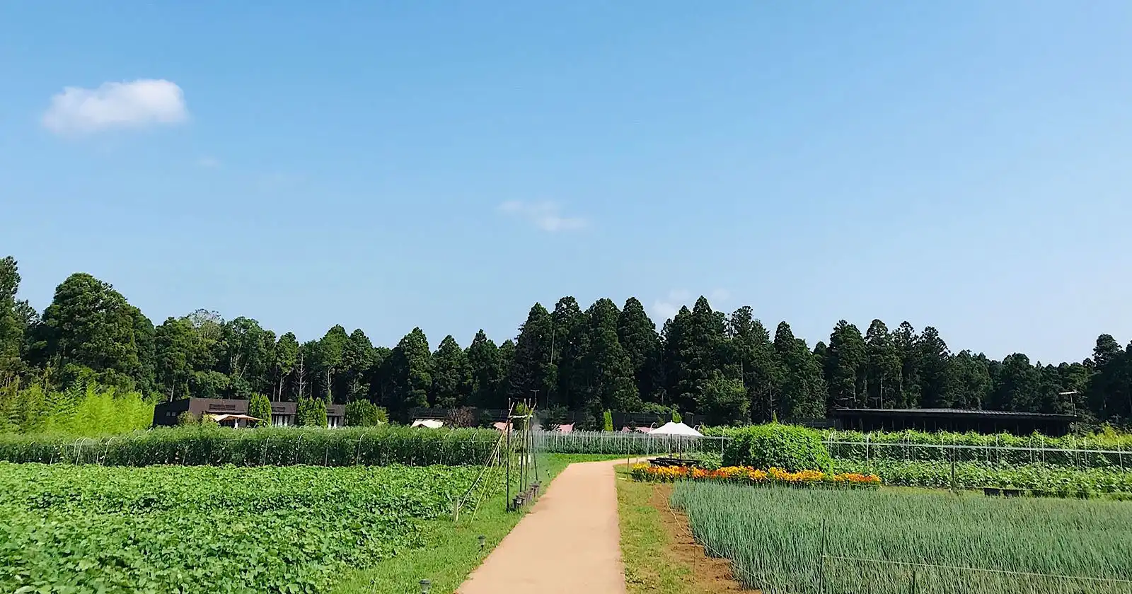 施設内は大自然と畑が広がり、農園野菜を使った料理を味わえるカフェも併設されています。