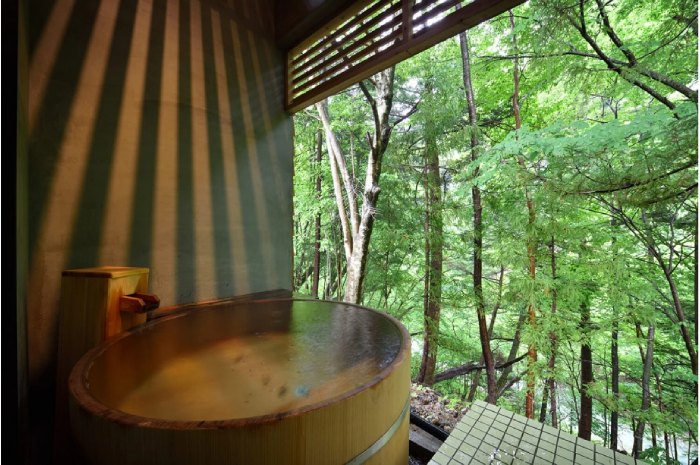 多摩川の渓谷を眼下に眺めることができる、2人だけのウッドテラスで、ゆるやかに流れる時間と奥多摩の自然を満喫することができます。