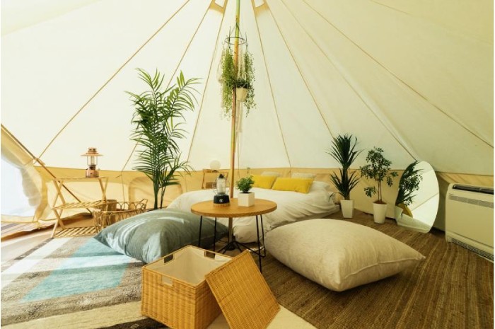リゾート型の複合施設内に併設された冷暖房完備の快適なテントで、ゆったりとグランピング気分を満喫しながら、プライベートデッキでBBQを楽しむことができます。