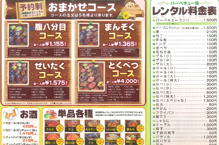 | 営業時間 | 10:00〜17:00 □夜のBBQ 18:00〜21:00 ※20名以上の団体客のみ |