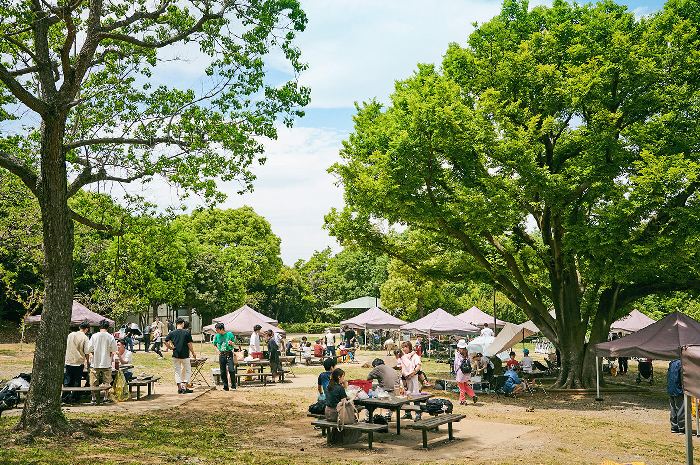 公園内の広々とした開放的な空間でBBQを楽しむことができ、日帰りBBQの他にテントを張って宿泊利用もOK!