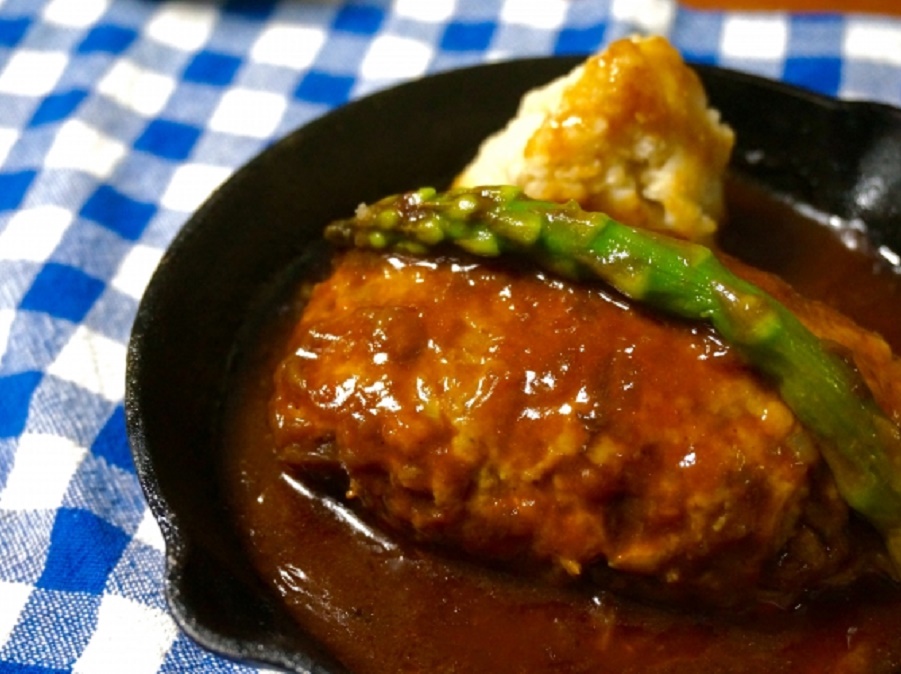 - 焚火煮込みハンバーグ(富士桜ポーク) 1セット:3,000円(ハンバーグ2個)