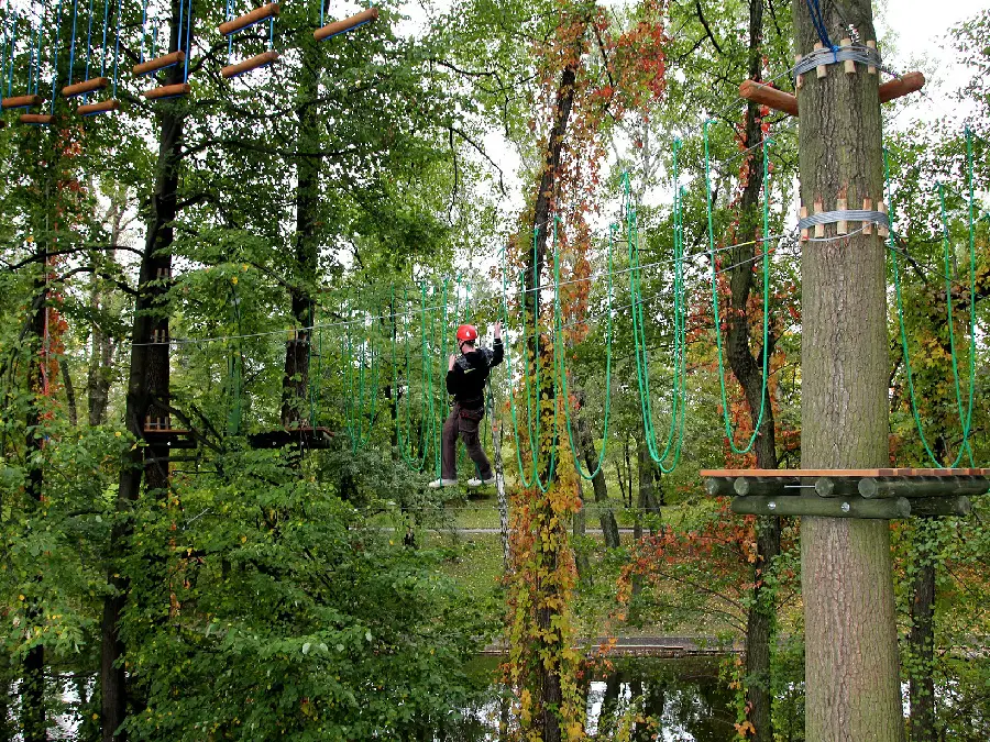 ロープを使って木を登るという基本的なクライミングのほか、木と木の間のワイヤーを歩いていく「モンキーウォーク」、木と木の間のワイヤーを滑車を使って滑る「ターザンスライド」といった体験をすることもできる貴重なスポットです。