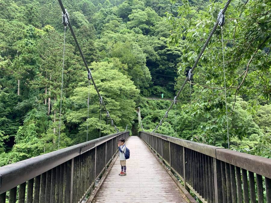 テントサイトから見える吊り橋を渡った先には温泉施設があります。