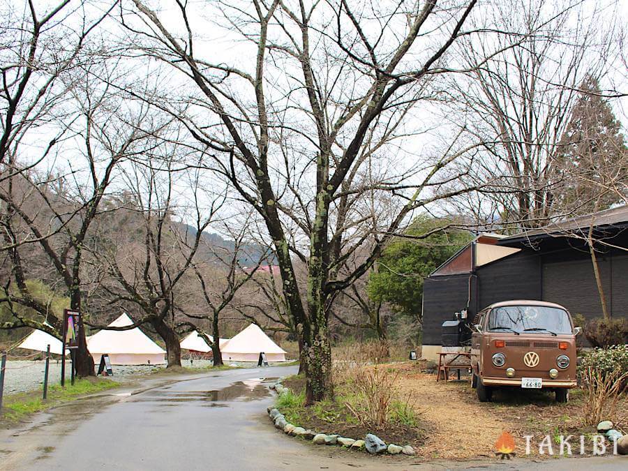 フリーテントサイト、グランピングサイトは車の横付けも出来ます。