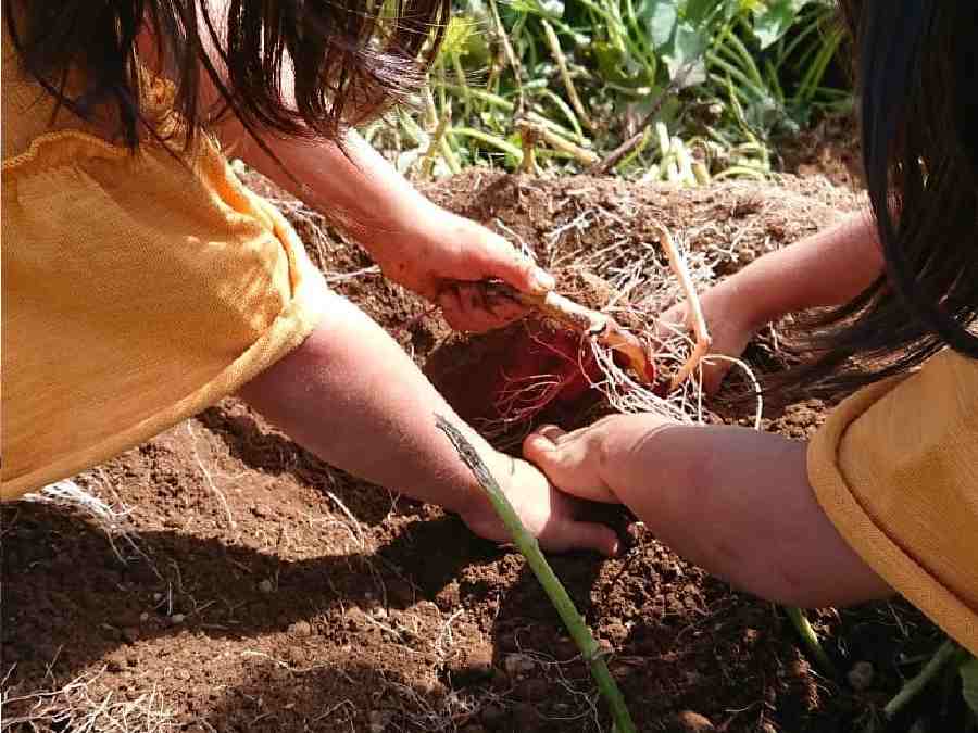 畑で思いっきり”おいも掘り”を楽しめる収穫体験です。