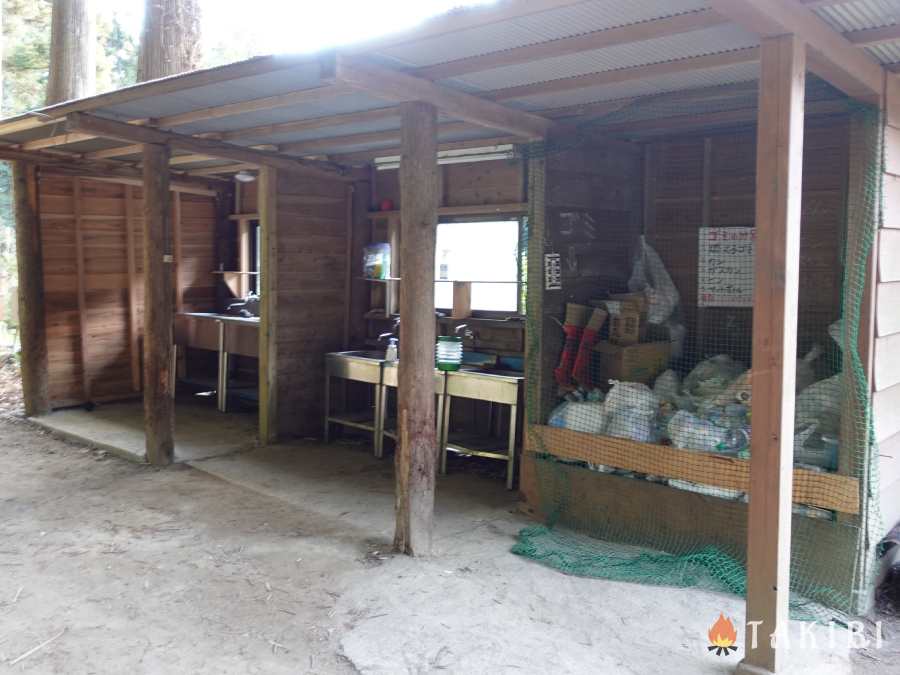 管理棟側にある炊事場には、来場者が使える冷蔵庫が置いてあるので、食材の保存に便利ですね。