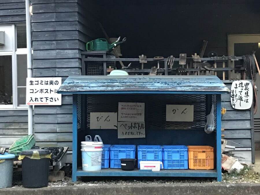 受付の横にゴミ捨て場があります。燃えるゴミ、資源ごみ、ペットボトル、缶とそれぞれのゴミ捨て場があります。生ごみは管理棟裏に生ごみの捨てる場所があるのでそちらに捨てます。燃えるごみは指定の袋に入れて捨てます。なくなった場合は受付でもらいましょう。