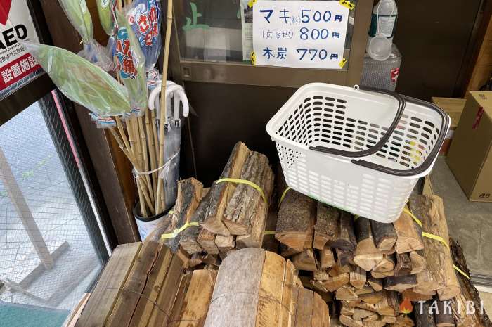 売店内では、キャンプ必需品の薪、木炭なども充実しております。もしものときも安心ですね!夏は虫取りなども楽しめるように、虫網なども置いてありました。