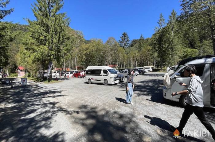 菅沼キャンプ村に入ると、すぐ右側に駐車場があります。