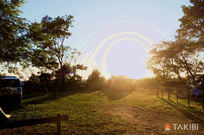 キャンプ場の名前の通り、印旛沼サンセットヒルズはちょうど印旛沼の方角に夕日が沈みます。沼に映る光がとても幻想的。