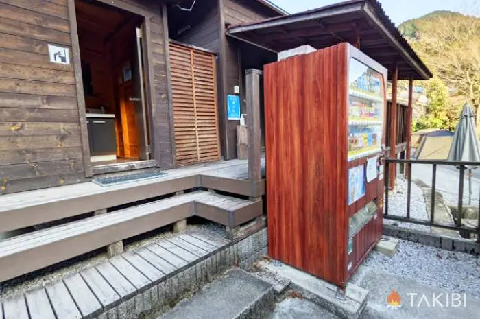 管理棟の横には、洗面所・お手洗い・コインシャワー・炊事場・炭捨て場・自販機が設置されています。