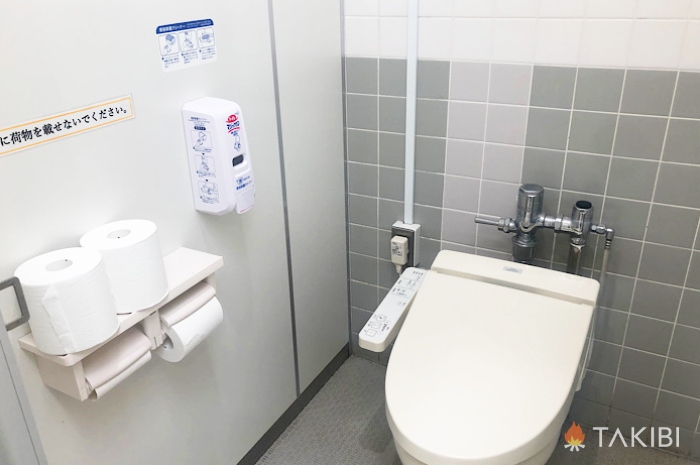 また、泡で出てくるハンドソープも一台に一つ、完備されています。ハンドドライヤーはコロナの影響で中止されているので、ハンカチタオルなどは持参した方がいいです。