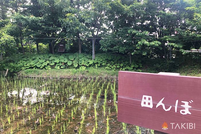 また、管理棟の脇道を入ると田んぼやメダカ池、カエル池などあり自然を感じられます。