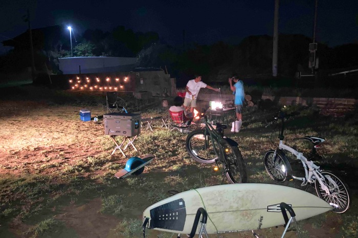 自転車、スケートボード、サーフボード、簡単なキャンプ道具等は置いてあります。