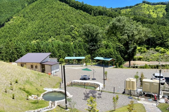 山に囲まれ静かなキャンプ場で、高速道路インター降り口からも近いキャンプ場です。