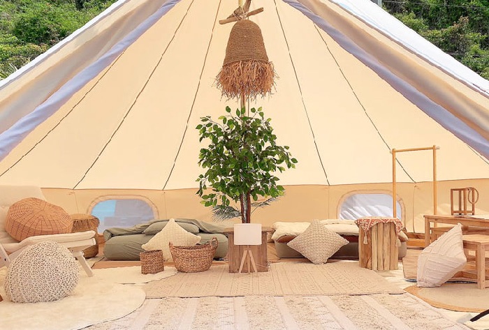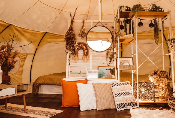 アジアンテイストから、アーバンで洗練されたインテリア、北欧テイストなどさまざまな種類のテントがあります。どれもおしゃれな室内なので、滞在するのが楽しいですよ。