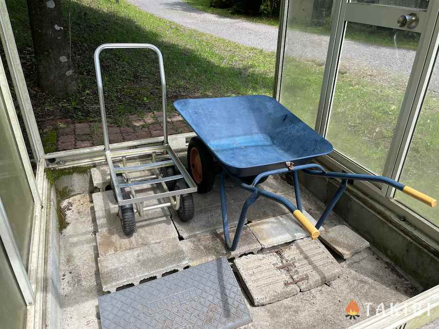 また、灰捨て場のすぐ隣には、荷物の移動に使うためのカートが1台用意されているので、運ぶ荷物が多い場合はこちらを利用することも可能です。