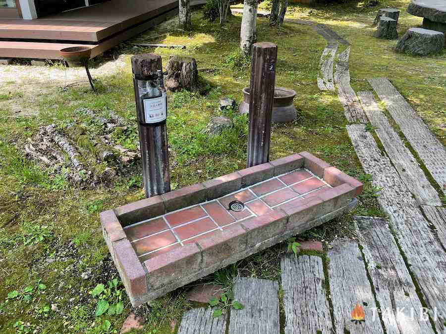 ただし、ここは水汲み専用の水道ですので、ここで洗い物をしたり、使用した水をここに捨てることはできません。その場合は次に紹介する洗い場を使用しましょう。