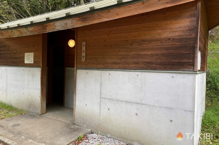 シャワー室は管理棟の横にあり、どこのサイトからも近い位置。さらに24時間利用できるのは嬉しいポイントでした!