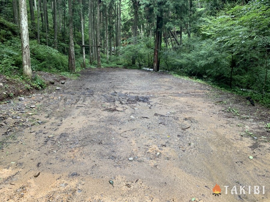 駐車場からさらに奥へ3分ほど歩くと、二手に別れた道があり、右側の道を進むと上記写真のフリーサイトがあります。