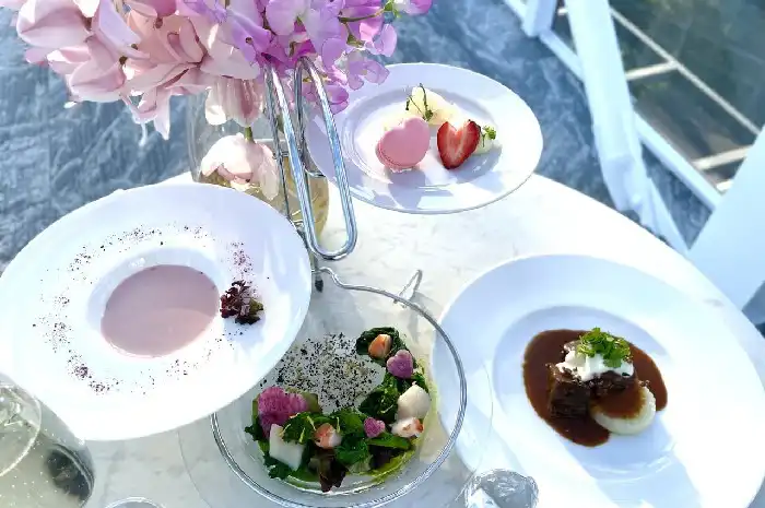 TAKIBI LOUNGEでは、専属シェフによるおしゃれな料理やスイーツが提供されます。暖かい焚き火を囲みながら、波音や小鳥のさえずりに耳を傾けてみてくださいね。
