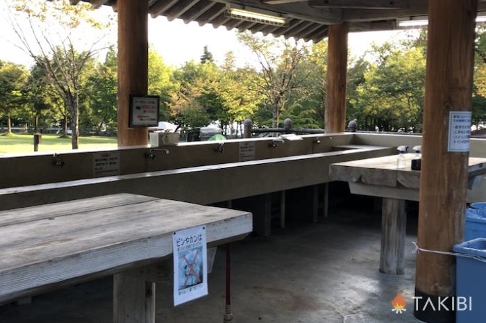 炊事場はキャンプ場内に2ヶ所あります。電気・屋根があり、夜間や雨天時も安心して利用することが出来ます。
