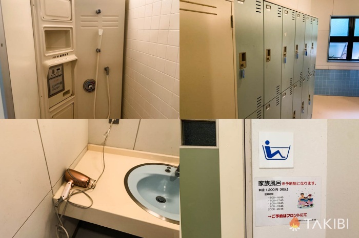 中の写真は撮れていませんが、家族風呂という貸し切り風呂がありました。1回45分で1200円です。ファミリーの方だと別々でコインシャワーに入るより安くなりそうですね。