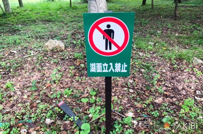 ついつい湖の近くまで散策したくなりますが、立ち入り禁止の看板がありました。特に小さなお子さんがいる場合は目を離さないよう気を付けましょう。