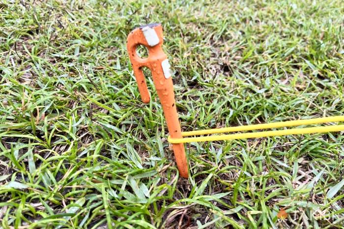 アルミペグでも刺さりますが、プラスチックペグだと少し苦戦します。