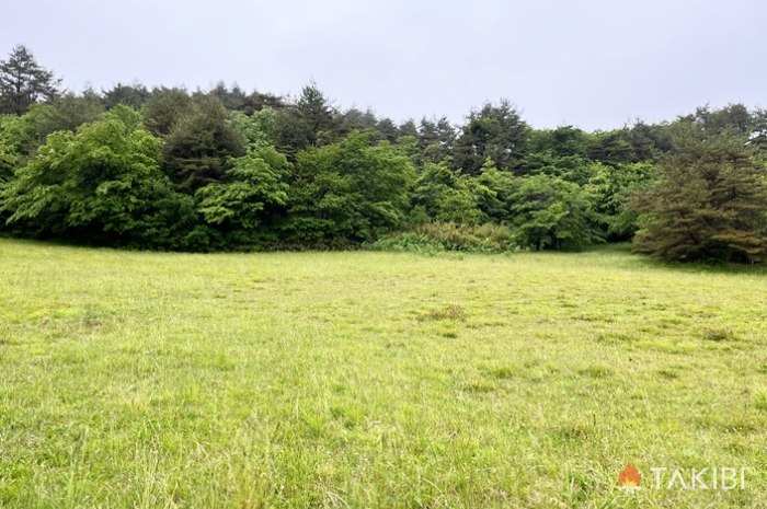 フリーサイトなので大型のテントやタープも問題なく設営可能で、今にも子どもが走り出しそうな芝生の地面です。