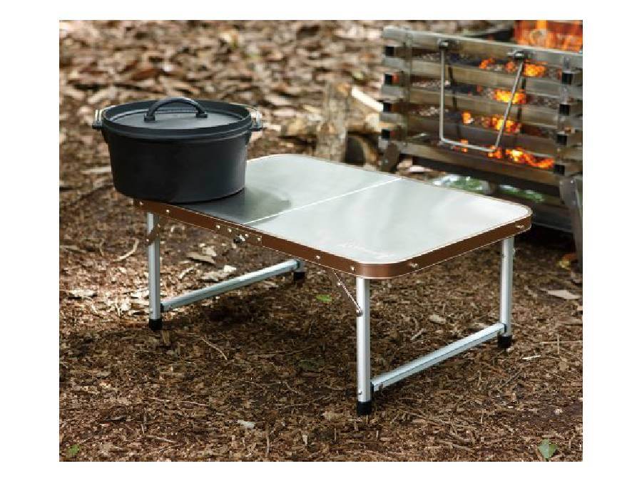 キャンプなどで料理をするときに、サイドテーブルとしても活用できる機能性に富んだローテーブルです。天板が丈夫なステンレス製になっており、熱々のダッチオーブンなどをそのまま乗せることが可能。できあがった料理の置き場所にも困りません。また、こちらの商品も二つ折りにできるため、使用しないときはコンパクトに収納できます。丸洗いもできるので、汚れたとしてもお手入れしやすいところも大きな魅力です。