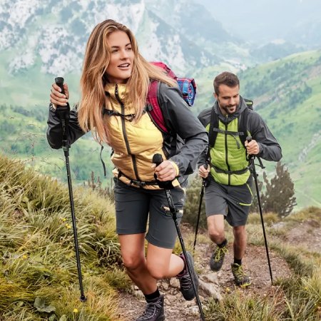 登山時に膝や腰への負担を軽減してくれるトレッキングポール。こちらの商品は軽量なだけでなく、折り畳み式なので持ち運びも楽に行えます。