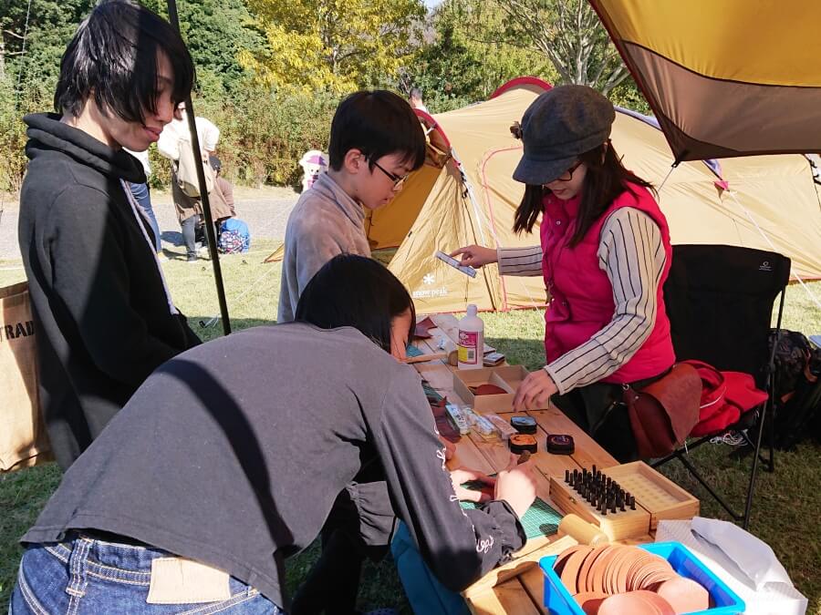 写真は革のオリジナルコースター作りです。楽しそうですね♪