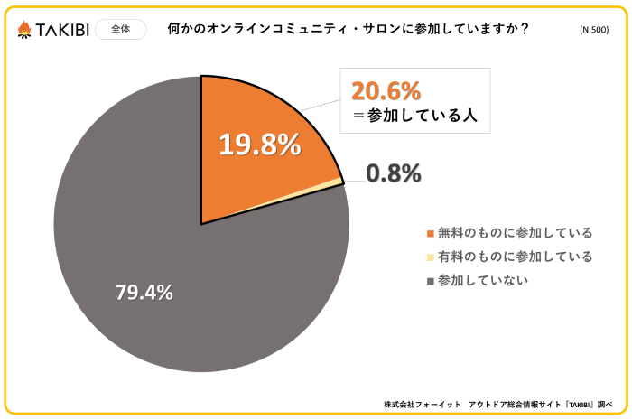 全国の10代〜50代の男女を対象に、「何かのオンラインコミュニティ・サロンに参加していますか?」というアンケートを実施したところ、約20%の人が「参加している」と回答しました。