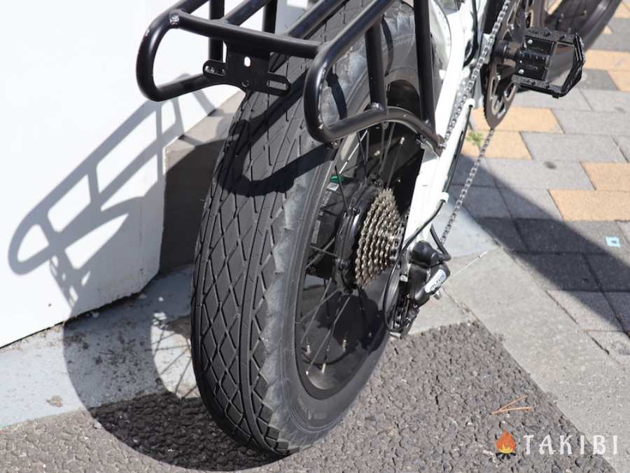 買った段階で履いているのはブロックタイヤ。耐パンク性も◎!