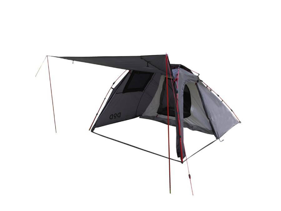 「DOD ライダーズバイクインテント」は、入り口部分でポールを使用することで、大きなタープとしても使えるテントです。バイクを置くことができるので、突然の雨からもバイクを守ることが可能です。また、ワンタッチシステムを採用しており、現地についてからすぐにテントを設営することができます。広めのテントなので、ゆったりと過ごせますね。